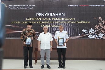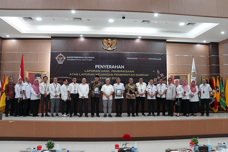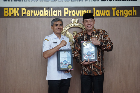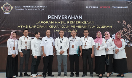 BKD KAB. KARANGANYAR---Pemerintah Kabupaten Karanganyar menerima Laporan Hasil Pemeriksaan (LHP) Tahun Anggaran 2023 dari Badan Pemeriksa Keuangan (BPK) RI Perwakilan Provinsi Jawa Tengah. Penyerahan LHP ini diserahkan oleh Kepala BPK Provinsi Jawa Tengah Bapak Hari Wiwoho menyerahkan dan diterimakan Penjabat Bupati Karanganyar Bapak Timotius Suryadi., S.Sos. M.Si dan Ketua DPRD Kabupaten Karanganyar Bapak Bagus Selo. di aula BPK Provinsi Jawa Tengah, Rabu (8/5/2024).