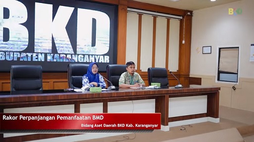 BKD KAB. KARANGANYAR----Untuk meningkatkan Pendapatan Asli Daerah Kabupaten Karanganyar Bidang Aset Daerah Badan Keuangan Daerah (BKD) Kabupaten Karanganyar menyelenggarakan Rapat Koordinasi bertempat di Aula Merpati BKD Kabupaten Karanganyar pada hari Selasa, 3 September 2024. Materi pembahasan adalah permohonan perpanjangan sewa pemanfaatan Barang Milik Daerah. Perpanjangan sewa tersebut diajukan oleh para penyewa Barang Milik Daerah. Rakor dipimpin oleh Kepala Bidang Aset Daerah Ibu Sri Wahyuningsih, S.H., M.M. dan di dampingi oleh Kasubid Pemanfaatan, Pengamanan Aset Daerah Bapak Eko Agus Santoso, S.Kom., M.M.