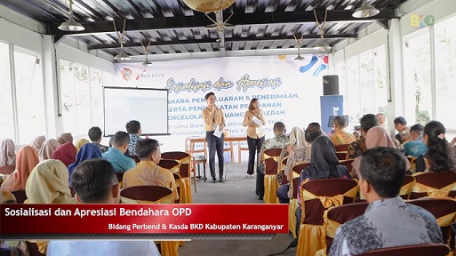 Sebelum acara dimulai para bendahara pengeluaran dan penerimaan OPD diberikan Sosialisasi tentang program Bank Jateng Cabang Karanganyar dan dari Bidang Perbendaharaan dan Kas Daerah BKD Kabupaten Karanganyar.