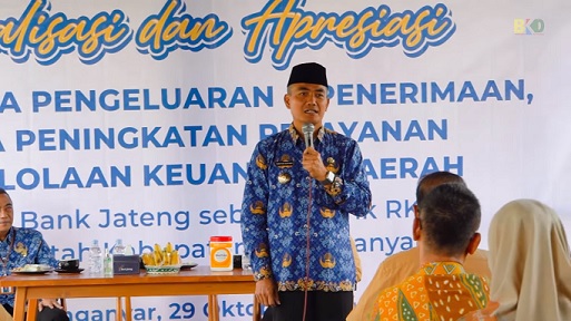 Dalam sambutannya Wakil Direktur Bank Jateng Cabang Karanganyar Ibu Eki Primurat Marwanti menyampaikan bahwa acara ini terselenggara berkat kerjasama antara Bidang Perbendaharaan dan Kas Daerah BKD Kabupaten karanganar bersama dengan Bank Jateng Cabang Karanganyar dan sambutan ditutup dengan sebuah pantun yang membuat suasana semakin hangat.